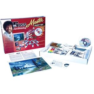 Let Bob Ross, host of tv's popular joy of painting show get you started painting beautiful landscapes. This master set contains eight bob ross oil colors (each 37-milliliter), one tube of bob ross liquid white (118-milliliter), one bob ross number 10 landscape knife, one 1-inch bob ross landscape brush, one 2-inch bob ross background brush, one number 6 bob ross fan brush, one number 2 bob ross script liner brush, one 1-hour DVD, complete full-color instructions to complete the Mountain Summit painting. Requires use of standard DVD player to use DVD. Conforms to ASTM D4236. Made in USA.