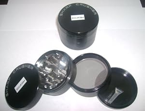SHARP CRUSHER........ Specially designed by highly sophisticated C N C machines, which utilize the latest technology in processing and shaping aluminum, providing more superior grinders with practically a zero flaw rate! Contains a special teflon O ring which makes grinding even easier with absolutely no metal shavings guaranteed! Two super strong neodymyum magnets are used to keep a nice and tight closure. his is the best selling grinder available on the market because of its size, awesome quality, and great price! Other sellers offer a smaller grinder at the same price! This is made of extremely durable, and strong aircraft grade CNC aluminum for quality, durability, preciseness, and to maintain its light weight. This is a FOUR STAGE 4 PC grinder which means it has four chambers including a pollen catcher. This awesome grinder has CNC DIAMOND CUT RAZOR SHARP teeth to grind with great efficiency and ease. This grinder also does a spectacular job at catching and storing pollen in its fourth chamber. Contains a stainless steel micro mesh screen which allows only pollen to fall through into the fourth chamber.