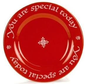 Renowned ceramics maker Waechtersbach revives an early American family tradition with its heirloom-quality “You are special today” Red Plate. Historically, a family member was served dinner on a red plate to celebrate an achievement, birthday, or any occasion that calls for special recognition. And who better to produce such a piece than the company famous for its brilliantly colored glazes, especially its original Cherry Red? The 10-1/2-inch plate showcases the congratulatory "You are special" message around the rim with a sweet floral motif that is repeated in the center of the serving area. It comes in a gift box with a pen to write on the plate's backside . Made in Germany; hand wash once pen has been used to write on surface.
