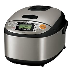 The New Zojirushi Micom Rice Cooker and Warmer NS-LAC05 three cup rice cooker has a micro computerized Fuzzy logic technology. The exterior of this rice cooker and warmer is clean and durable clear-coated stainless steel which makes it unique in design. It has a automatic keep warm feature and a spherical inner cooking pan and heating system.